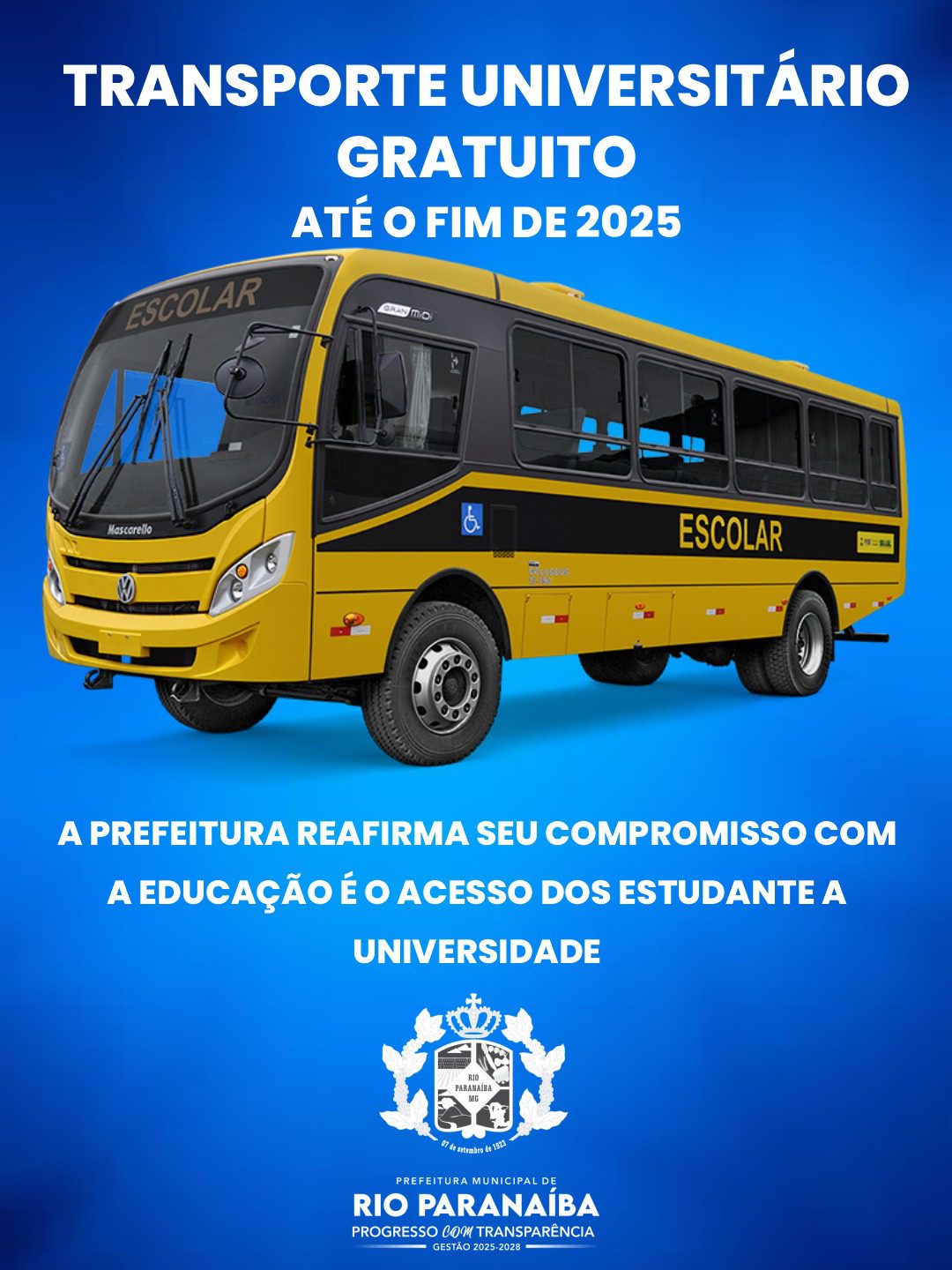 O transporte universitário é custeado integralmente pela Prefeitura, uma vez que não há repasses estaduais ou federais destinados a esse serviço.